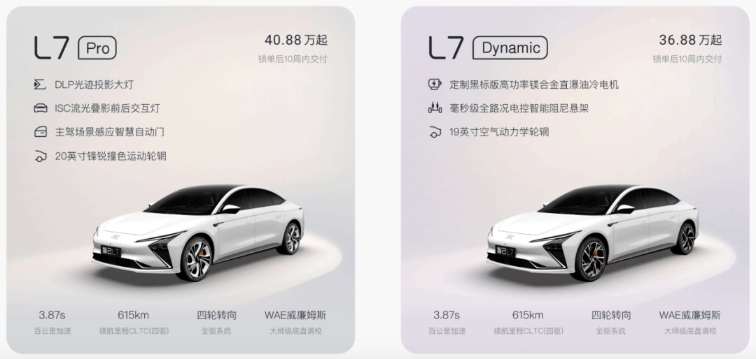 今年4月17日,上汽旗下高端品牌智己汽车宣布智己L7正式上市,其中,智己L7 Pro售价40.88万元起,智己L7 Dynamic售价36.88万元起。