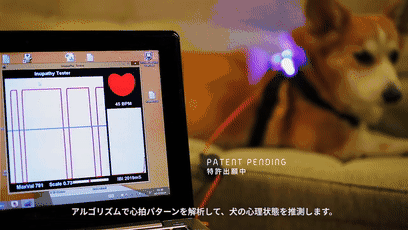 近期日本一家公司发明了一款能监测宠物心情的穿戴设备Inupathy,通过对宠物心跳的监测,收集心律变异讯号进行分析来判断狗狗现在的心情如何。
