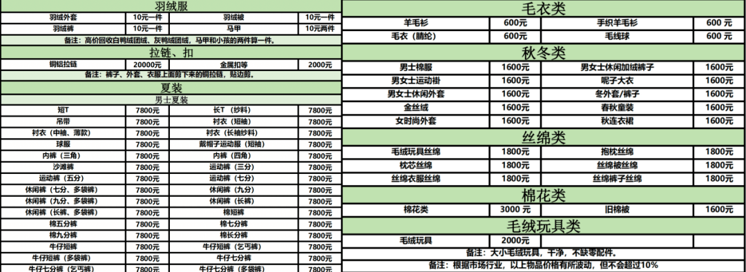 图 / 河北一家分拣厂的部分单品回收价格