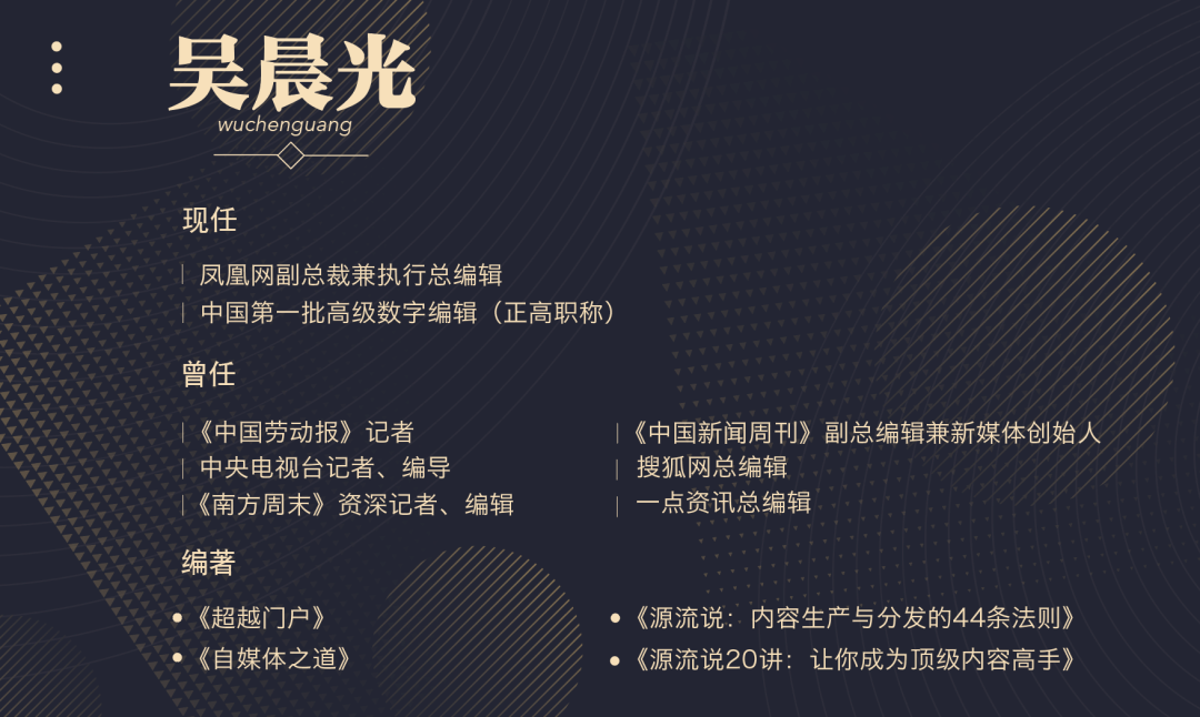 吴晨光:2020年出版《源流说》之后,我回到凤凰网任职。媒体的工作基本上都可以用“源”“流”两个字概括,我现在主要是管“源”,“流”的工作也负责一部分。