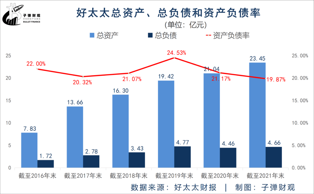 此外,好太太的偿债能力指标也一直处于较为健康的水平。财报显示,最近6个年度,好太太的平均资产负债率仅为21.49%,远低于公认的资产负债率适宜水平(40%-60%)。