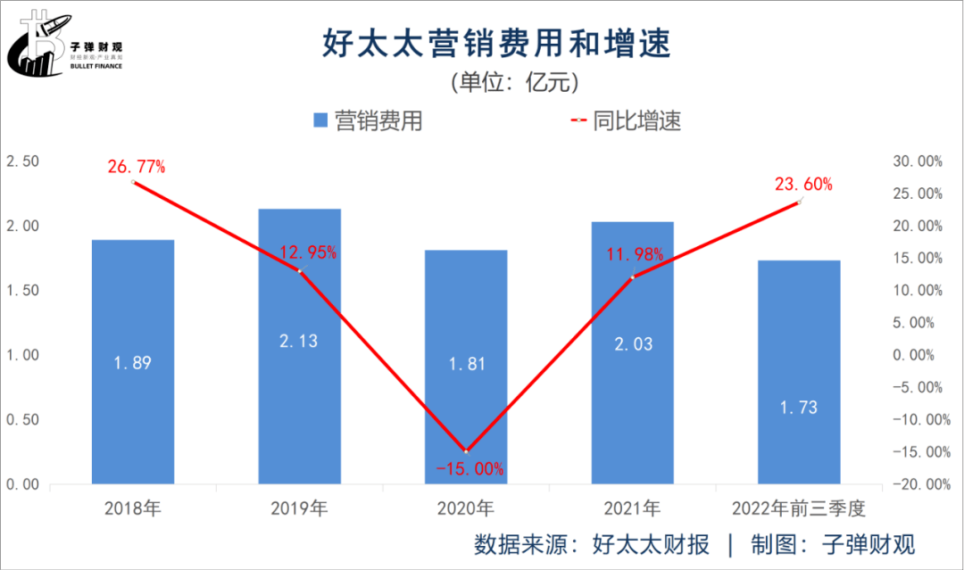 反映到好太太的营销费用上,则是数据直接上涨。最新财报显示,2022年前三季度好太太的营销费用为1.73亿元,同比增长23.60%。