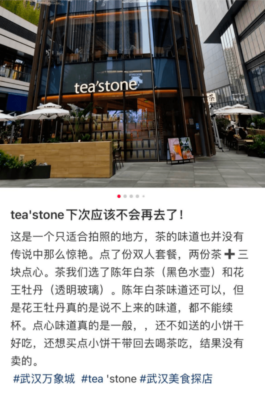 不过,即便是网红如tea’stone,也并不能总是让消费者满意。「创业最前线」在小红书上搜索tea’stone,前20个帖子里,6个都是消费者的吐槽贴。有消费者称“这是一个只适合拍照的地方,茶的味道也并没有传说中那么惊艳”。