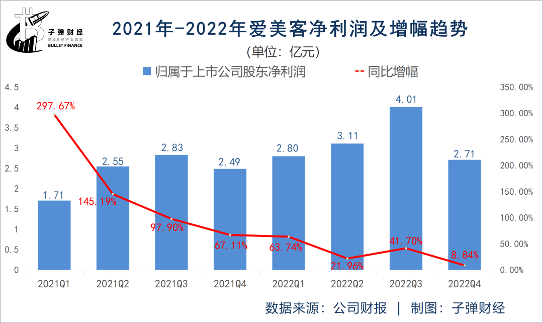 究其根本,是爱美客当前面临着一个关键问题——增长幅度持续收窄。财报显示,2022年爱美客实现净利润12.64亿元,同比增长31.9%,这一增幅创7年来新低。