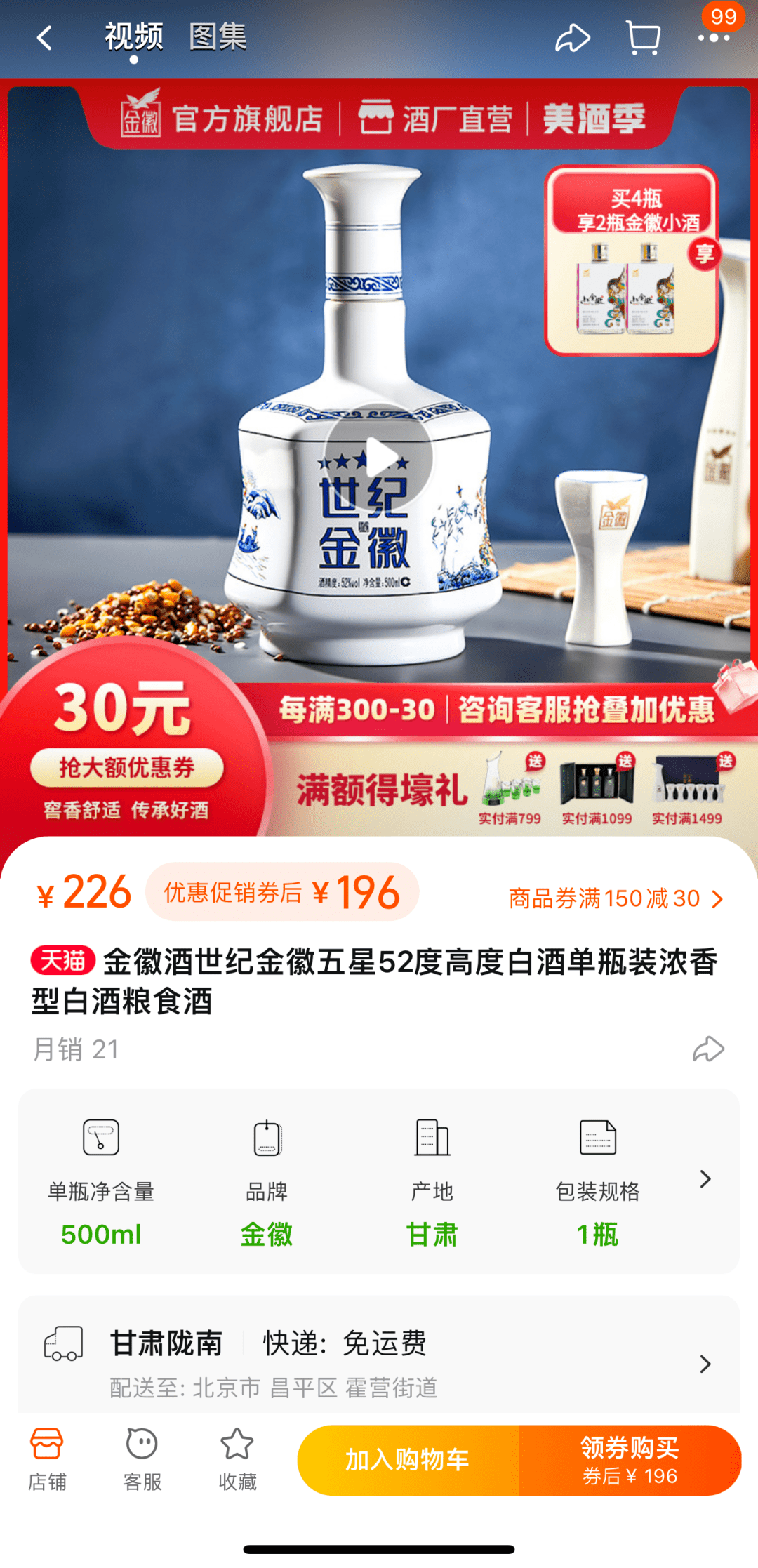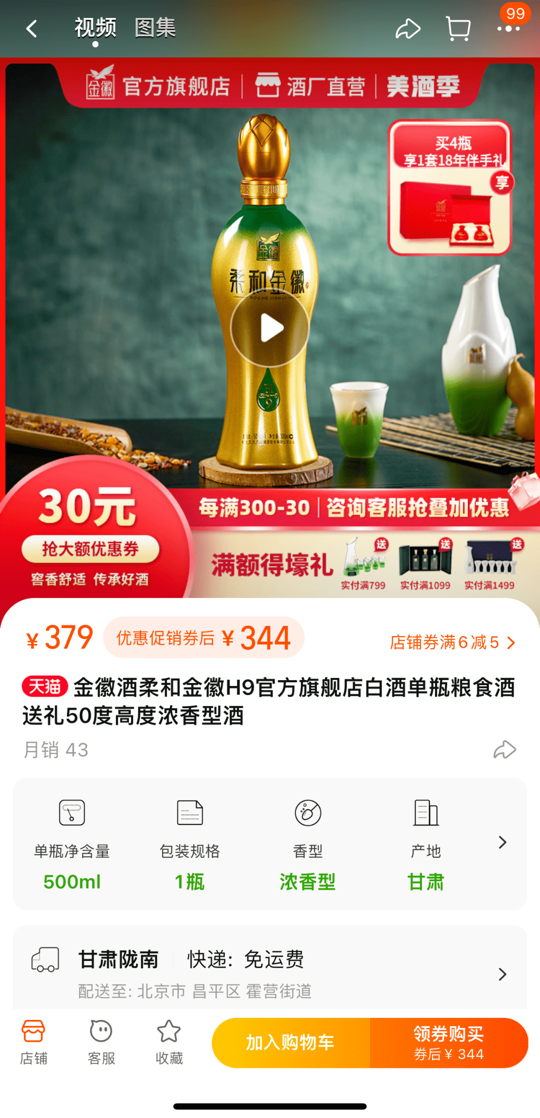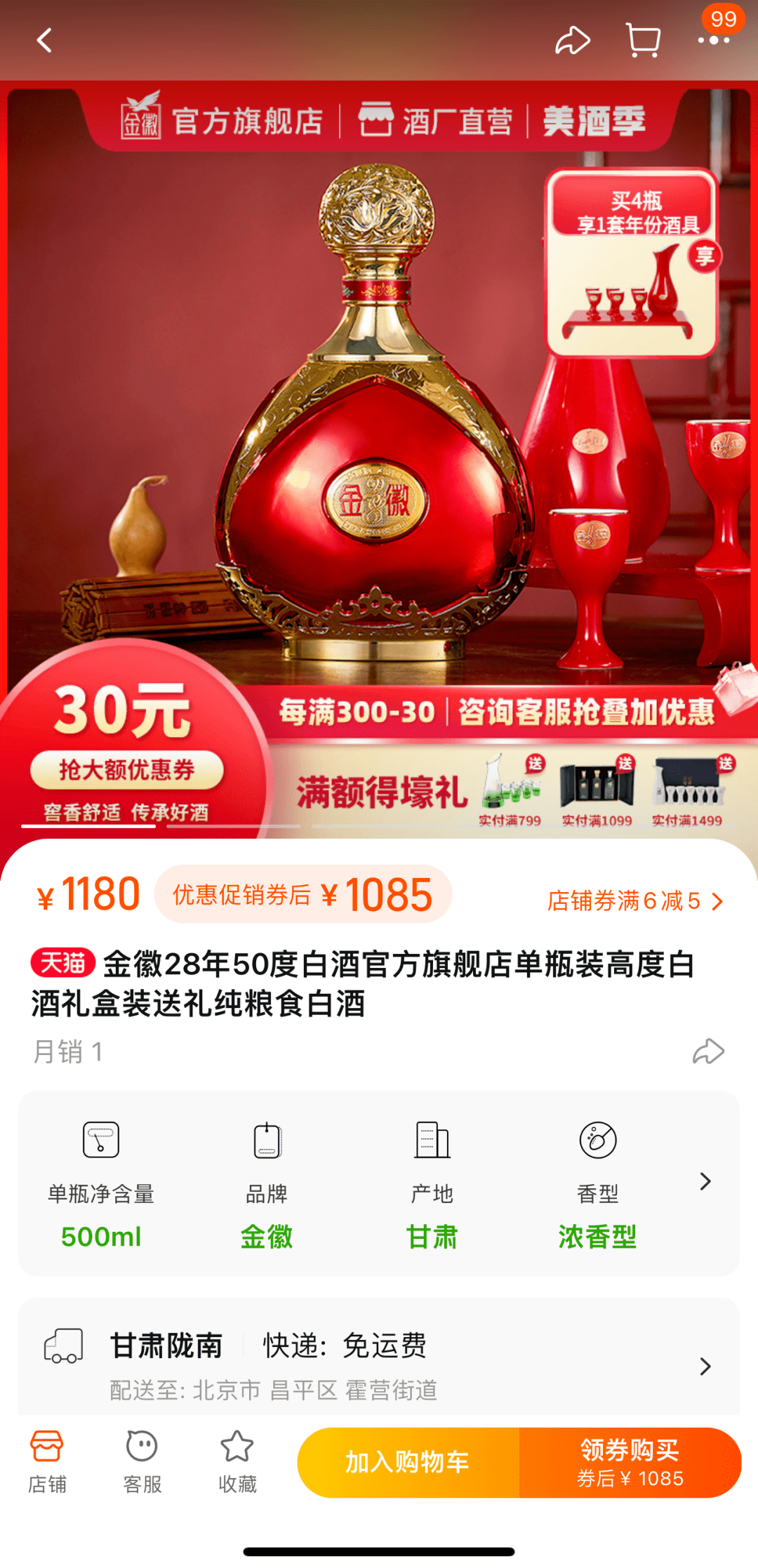 旗下高档白酒金徽28、金徽18、世纪金徽五星、柔和金徽H9单瓶产品定价分别1085元、463元、196元和344元,然而前两款白酒在金徽酒天猫旗舰店的月销量仅有1瓶,世纪金徽五星和柔和金徽H9月销量分别为21瓶和43瓶。