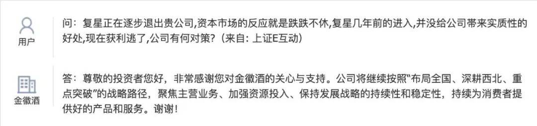 但随着复星系“退烧”抛售股权,金徽酒也终于被打回原形。