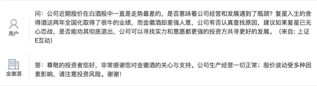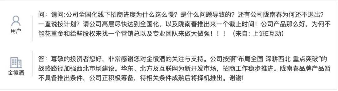 一位投资者甚至直接质疑金徽酒在白酒股中表现最差,担心公司经营和发展是否遭遇瓶颈。