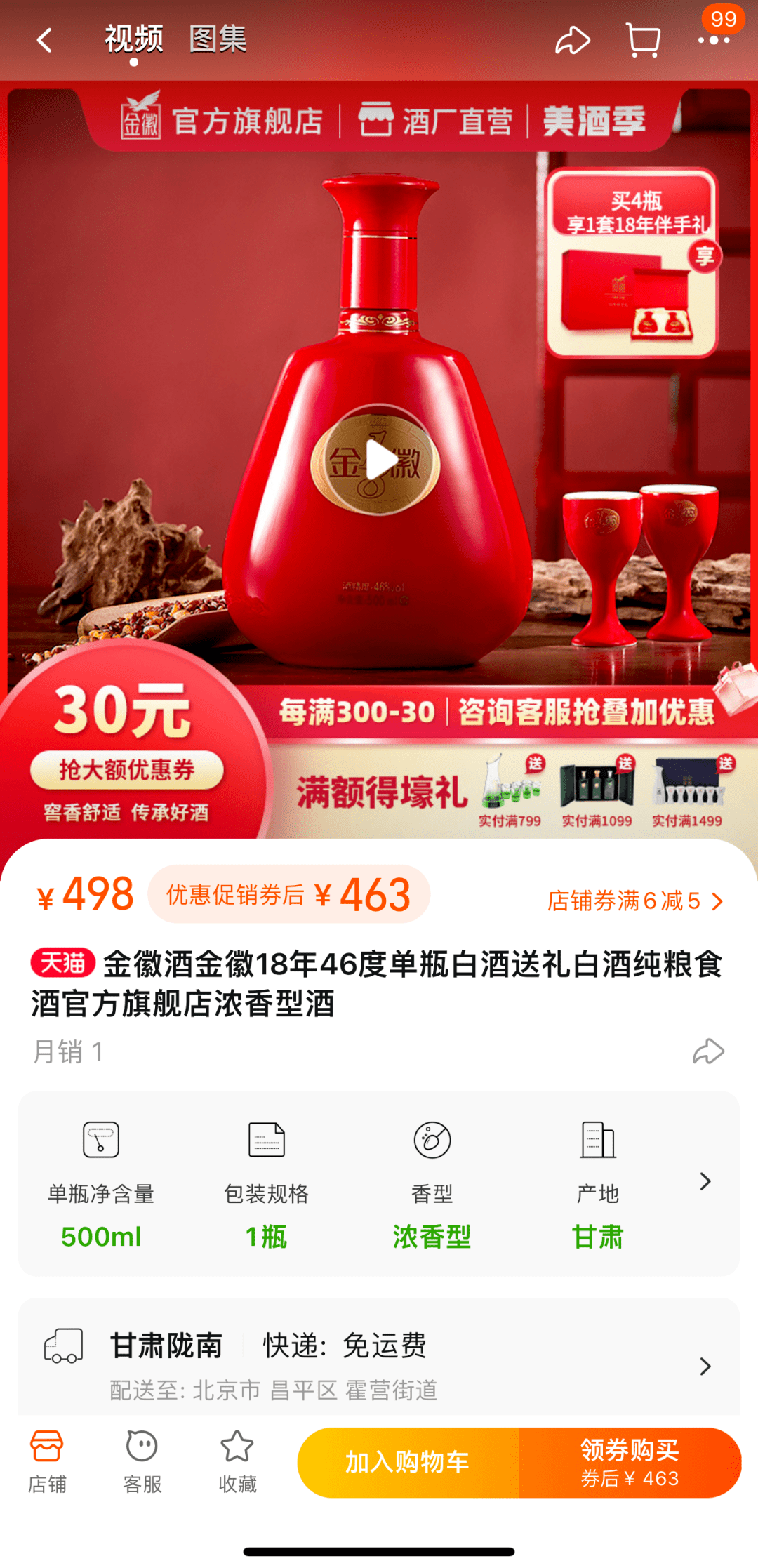 而在次高端白酒档位,除金徽酒之外,消费者还有更多选择:据天猫官方旗舰店定价,500ml郎酒红花郎53度酱香白酒售价为409元;500ml舍得52度浓香型白酒售价448元。