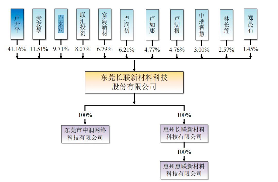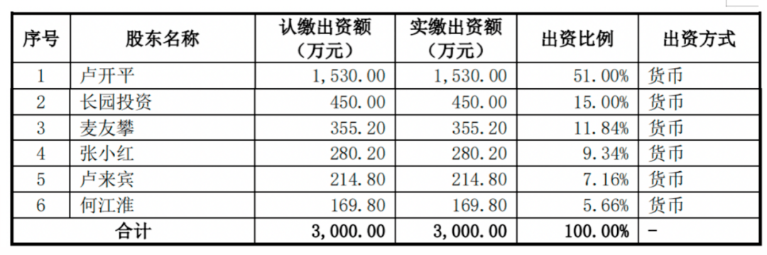 招股书显示,长联科技成立于2009年11月4日,注册资本为3000万元。其中,卢开平持股51%,卢来宾持股7.16%,二人为兄弟关系。