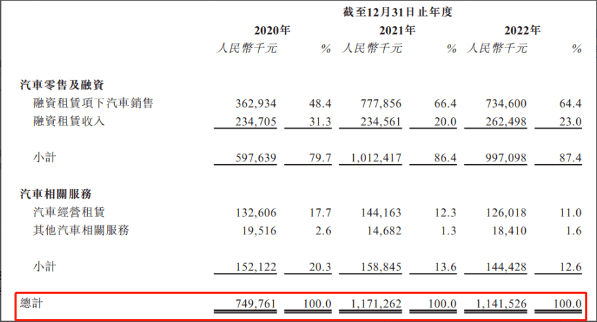 造成公司营收下滑最主要的原因是融资租赁项下汽车销售营收减少。招股书显示,2020年至2022年,喜相逢融资租赁项下已售新车数目分别为3901辆、7375辆、7153辆,汽车销售减少导致该业务营收减少。