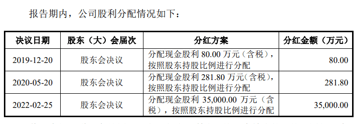 2022年2月25日,股东会决议,分配现金股利3.5亿元(含税),分配原则是按照股东持股比例进行分配。