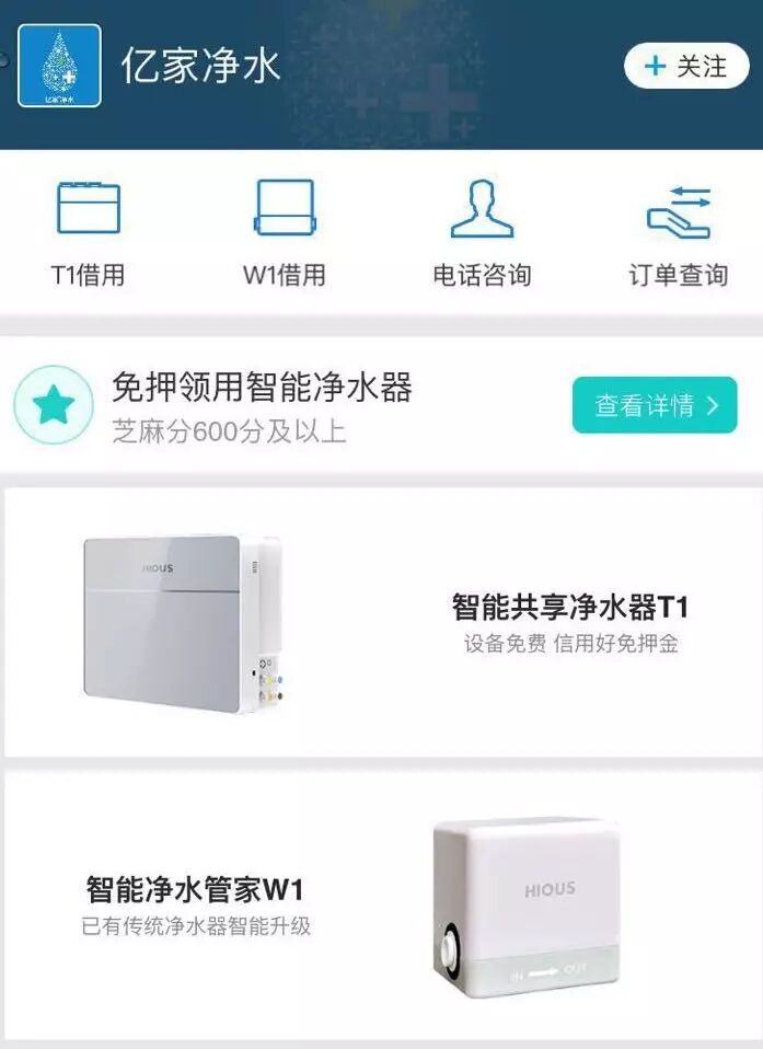 近日,亿家净水“共享净水器”服务正式登陆芝麻信用生活平台。只要用户芝麻信用评分不低于600分,即有机会免押金享受“共享净水器”服务。亿家净水作为唯一得到阿里系等大平台认可的净水器领先品牌,正式拉开共享净水器的序幕。