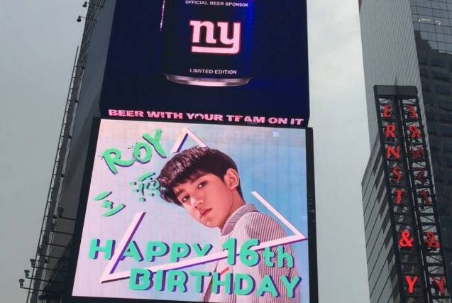 粉丝为王俊凯在纽约时代广场投放了广告
