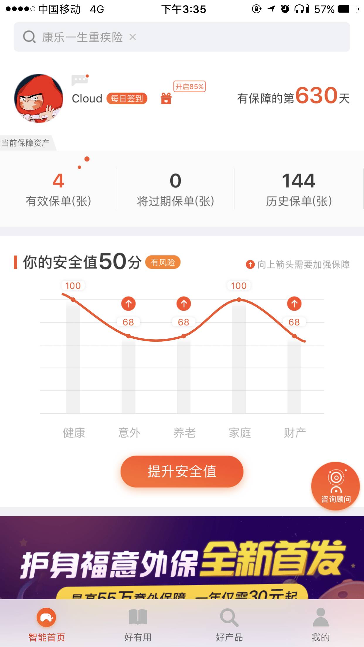 用户们的风险测评数据、家庭成员状况,甚至在大象App上留下的数据痕迹,都成为大象保险提供专属方案的重要依据。除此之外,用户们还可以根据自身需要,在“好产品”版块的百余类险种中浏览选购。