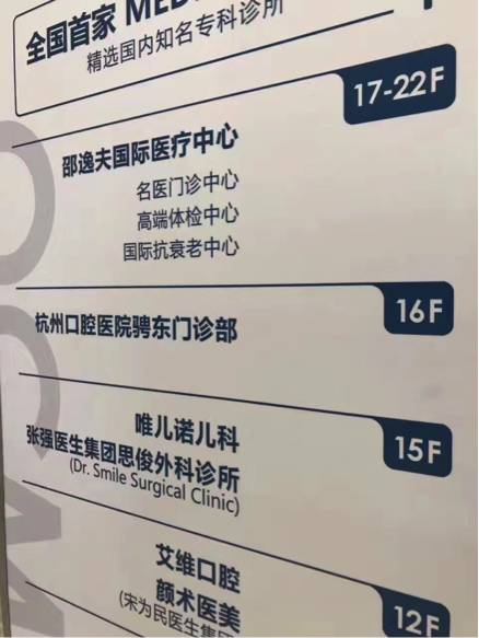 9-16层招租高端民营的外科、儿科、口腔科、眼科、中医、医美等专科诊所;17-22层,则是全程医疗和邵逸夫医院联合打造的邵逸夫国际医疗中心。