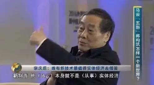 去年年底,宗庆后在央视节目中炮轰马云:“除了新技术,其它什么新零售,新制造,新金融,新资源,通通都是胡说八道。”