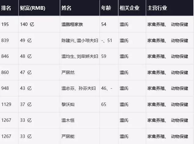 而且,这家企业更是带出了一大批亿万富豪,温氏集团整体上市后,带出了六千多名土豪,其中就有13位亿万富翁了。