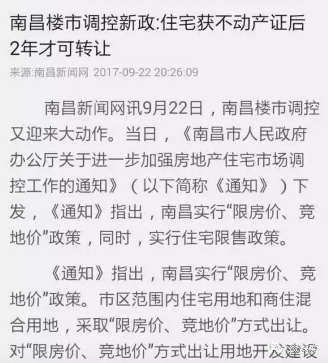 一夜之间重庆、南昌、南宁、长沙等城市接连发布楼市调控新政,而且调控均指向同一个方面——限售,而西安则出台新政规定商品房在调整价格前,须向物价局进行价格申报。