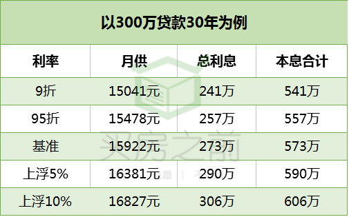 假如你要贷款300万(30年),如果前不久还是9折的时候没买房,现在买房月供就要多出近2000元,利息多出65万!