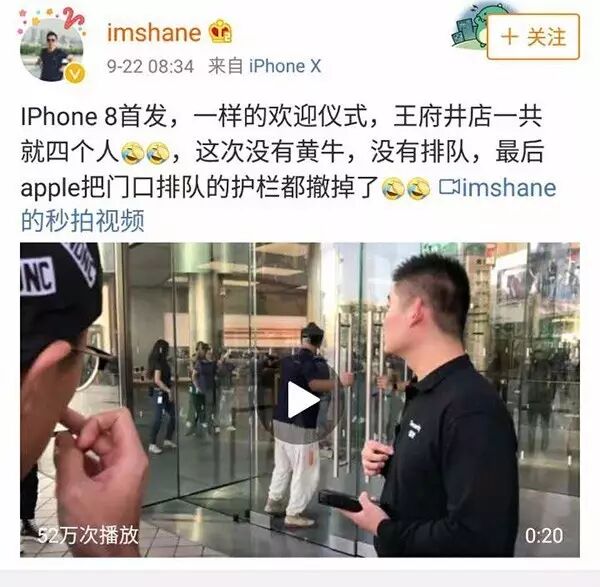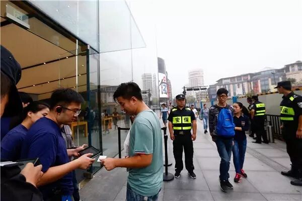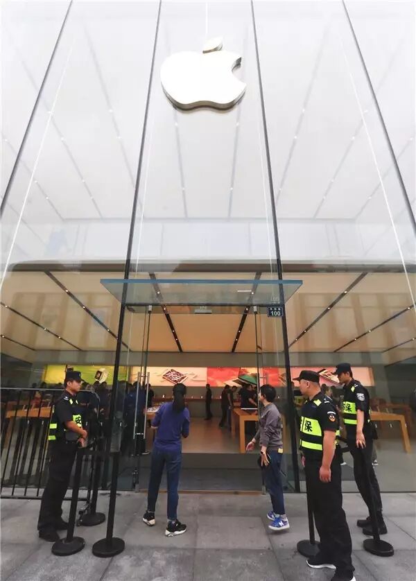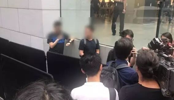 3、上海:位于上海国金中心的苹果零售店,截至八点开售时一共三名排队者