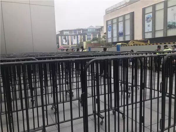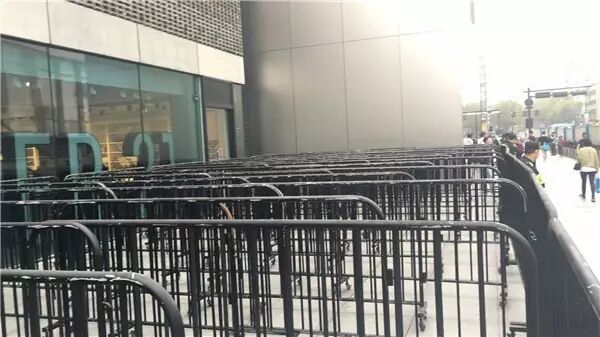 走近一看,咦,没有人排队啊!早上6点多来的三四十个保安,还有列了一整排、拐了好几个90度弯的黑色栅栏,此刻却备受冷清,毫无用武之地。