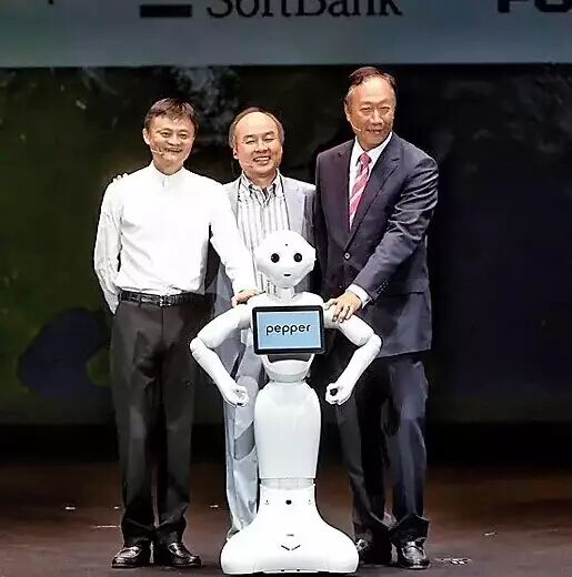 鸿海董事长郭台铭(右)、软体银行创办人孙正义(中)和阿里巴巴创办人马云(左)