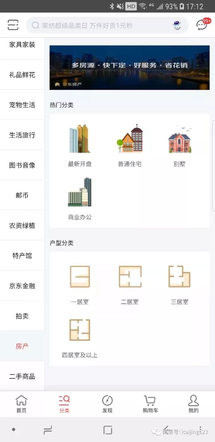 10月24日,京东方面还宣布了一件大事,京东房地产频道正式上线。如果打开京东的客户端会发现,京东房产频道已经在里面了。