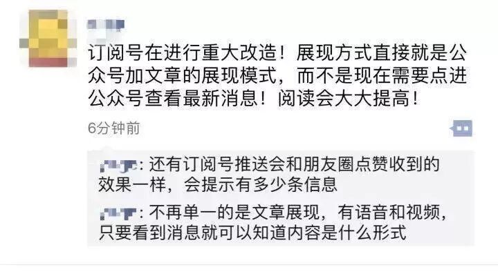 近期,网上突然开始流传“微信正计划对订阅号进行重大改造”的消息,微信订阅号的展现形式将从原来的折叠界面变成类似今日头条的信息流。目前具体情况仍不明朗,不过新榜表示经其求证打听,该消息应该属实。对此传闻,目前微信官方并未作出任何回应。
