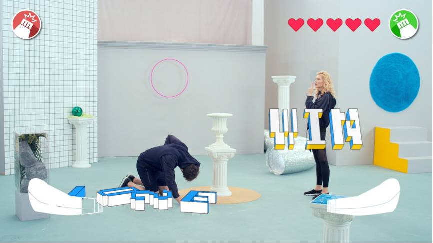 在游戏场景中,看似荒诞的一切,都能得到合理的解释。趣味特效和貌似刻板的石膏雕塑,将次元壁再次打破; 似真似假的对决中,玩具枪的砰砰声保留了一丝暴力和戏谑,这一切只是游戏。短片特邀“小科学说”主理人李小科和亚洲游泳锦标赛铜牌,狂热的运动爱好者ALEX共同演绎。
