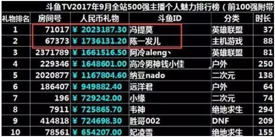 其中斗鱼主播冯提莫收到了160万人民币的礼物。
