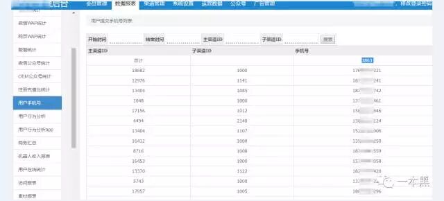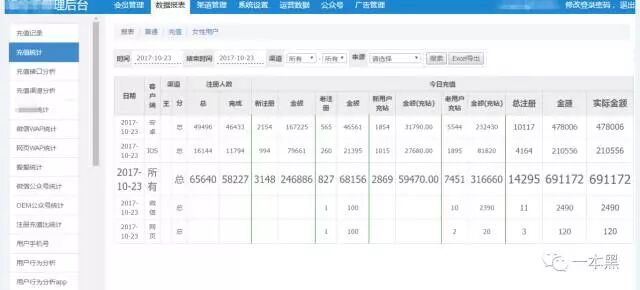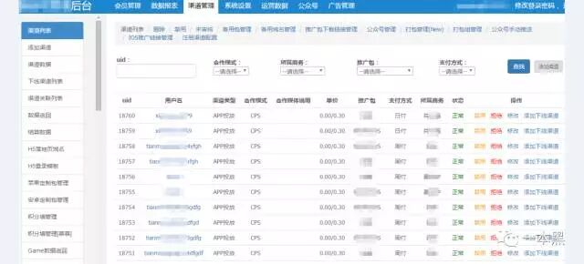 后台里完整的展示了该APP所有信息,包括会员管理、数据报表、渠道管理、运营数据等。