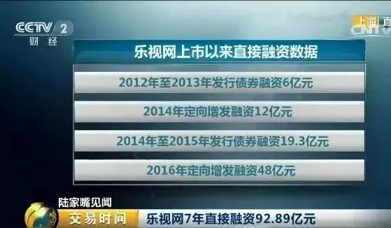 2、乐视网7年直接融资92.89亿元