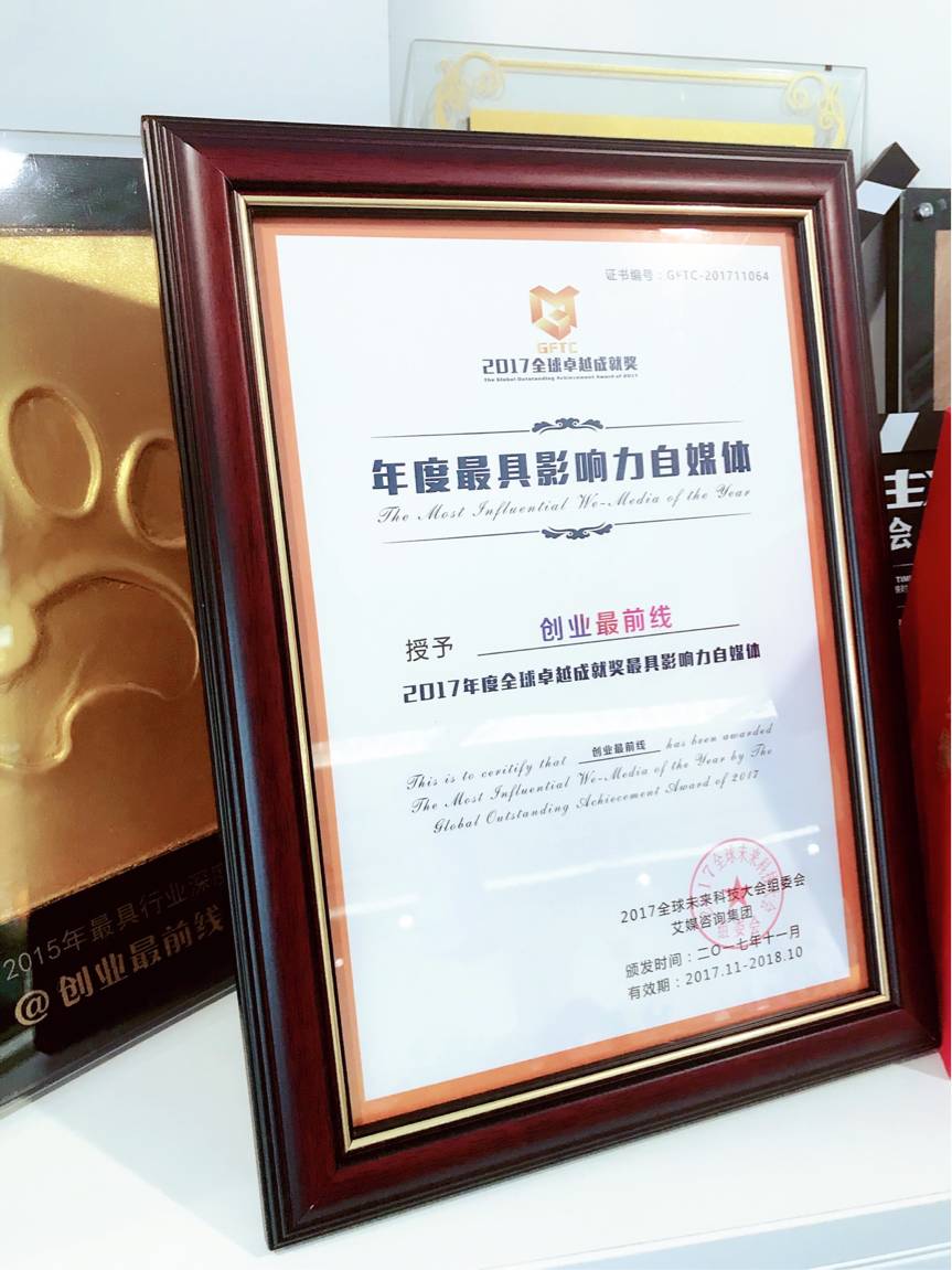 (创业最前线荣获“2017全球卓越成就奖”—最具影响力创投新媒体)