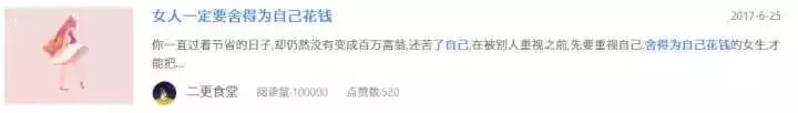 在这篇《女人一定要舍得为自己花钱》10W+里,读者在评论区给了使劲花钱的理由: