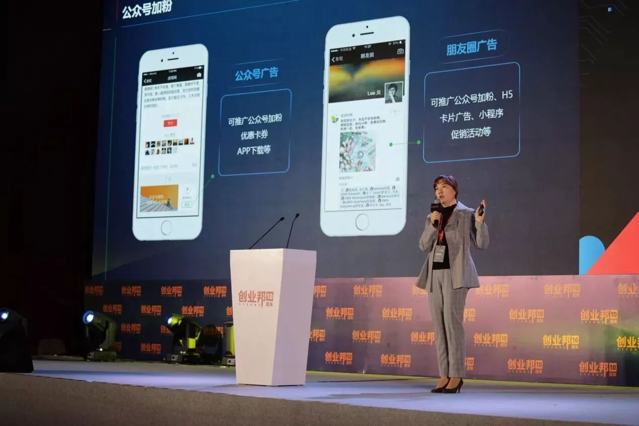 11月30日,“2017创业邦100未来领袖峰会暨创业邦年会”在京开幕。腾讯社交广告网服行业总监贾媛媛作为受邀嘉宾,在峰会首日的演讲中指出创业者前期推广的三大痛点,并结合寺库、途虎养车、年糕妈妈等成功案例,向与会者展示了腾讯社交广告的破解之道。