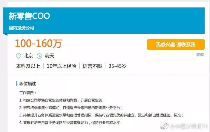 招聘新零售COO一职,年薪高达160万,就连新零售便利店的负责人,年薪也能轻松开到百万以上。