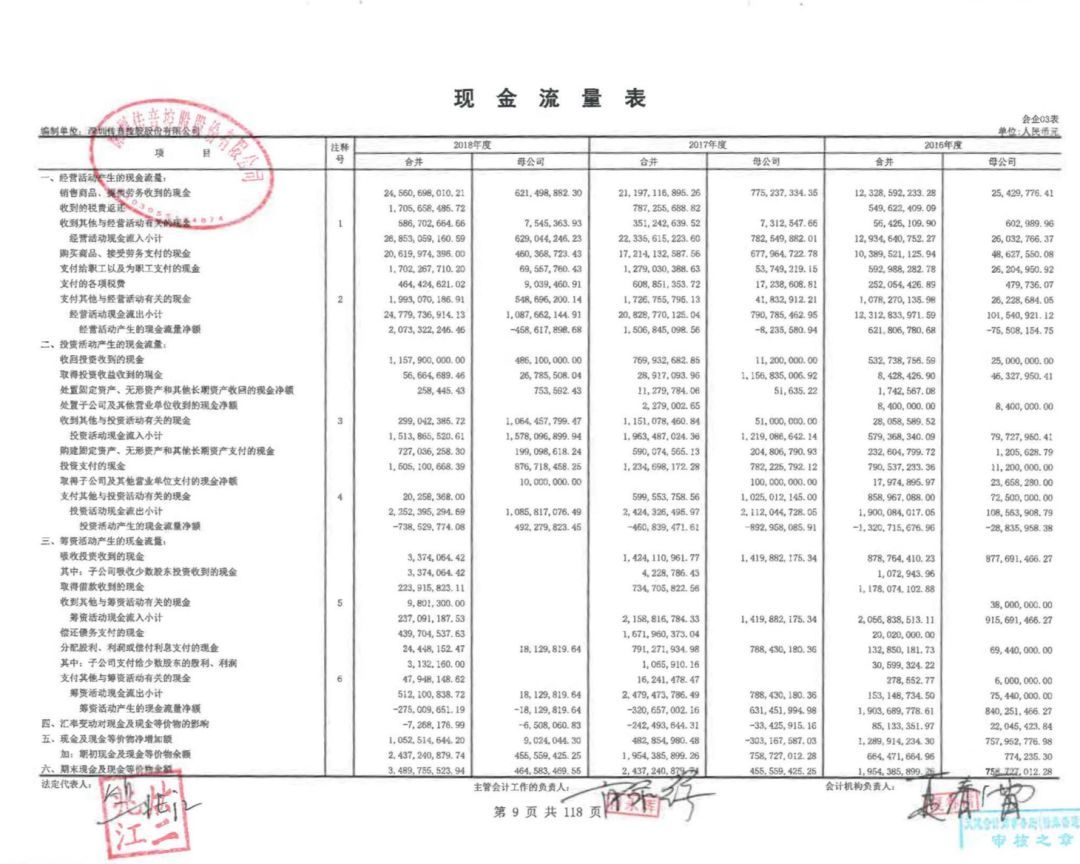 在传音公司的现金流量表中,归属于母公司的经营活动产生的现金流量净额却连续三年出现负数,2018年为-4.58亿元、2017年为-823万元、2016年为-7550万元。