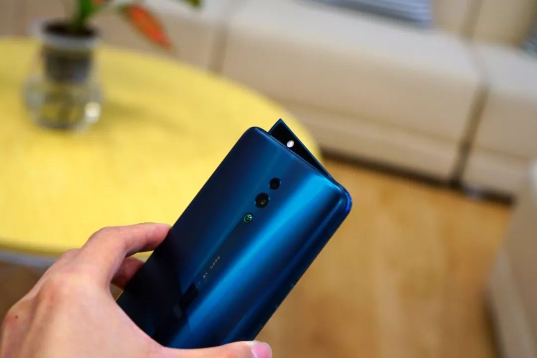 在Find X的弹出镜头大获成功后,感觉OPPO是打算把这种形态死磕到底了,这次又重新设计了一个“海豚鳍摄像头”。