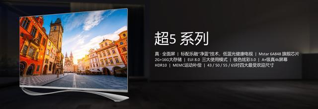 在产品工艺上,超5具备更高屏占比。普通电视采用前框包裹式封装技术,会牺牲一部分屏幕显示面积,而超5的全面屏创新性的采用贴合技术,使用屏幕无遮挡的超窄边框,得以实现"更大视野"的全面屏形态,整体的美观程度和工艺水平提升至新的高度。同时,金属超薄机身,更加纯粹和大气。无缝弯折工艺,让边框处没有拼接缝隙,一体成型金属边框,大幅提升机身结构稳定性和安全性。无论底座还是壁挂,机身最薄处仅8.8mm更凸显科技感及设计美感,尽显极致科技美学。
