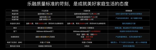 张荣东认为,一台好的电视产品,不只是炫技和极致科技的堆砌。乐融Letv对于最终产品的测试,始终坚持着比行业更为严苛的标准。例如,在温度50度湿度80%的情况下能工作236小时;在电磁干扰测试(EMI)中余量大于6DB (行业标准是3 DB)。乐融质量标准的苛刻,是成就美好家庭生活的态度。