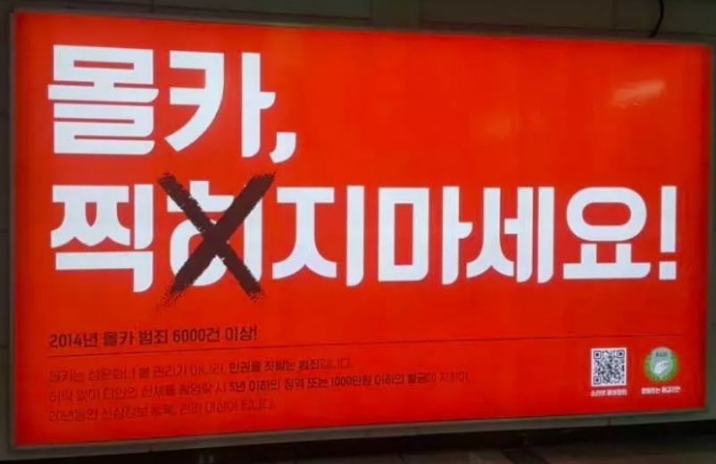 在韩国有一个特别有趣的现象,即便是在把手机调成静音后进行拍摄,还是会发出快门声。这是为了增加偷拍的风险,提醒受害人注意。