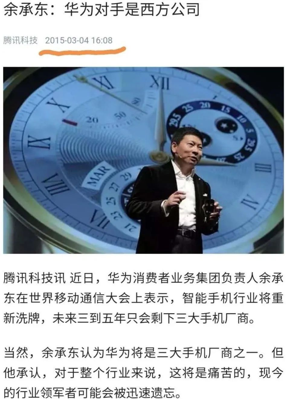 5年前的今天,华为消费者业务负责人余承东在世界移动大会上称,智能手机行业将重新洗牌,未来三到五年只会剩下三大手机厂商。“未来我们的主要对手将是西方公司,而不是中国公司。”