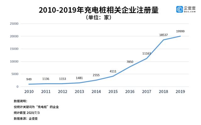 企查查数据显示,2014年关键词涉及“充电桩”的企业新增注册量一举突破2500家,同比增长超过70%;2020年上半年,新基建等利好政策推动下,关键词涉及“充电桩”的企业新增注册9939家,同比增长11.2%,仅6月新注册数量即有2385家。目前我国涉及“充电桩”关键词的在业、存续企业已达到7.8万家。