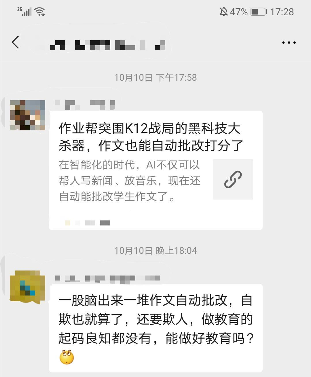 (图 / 某教育群微信聊天截图)