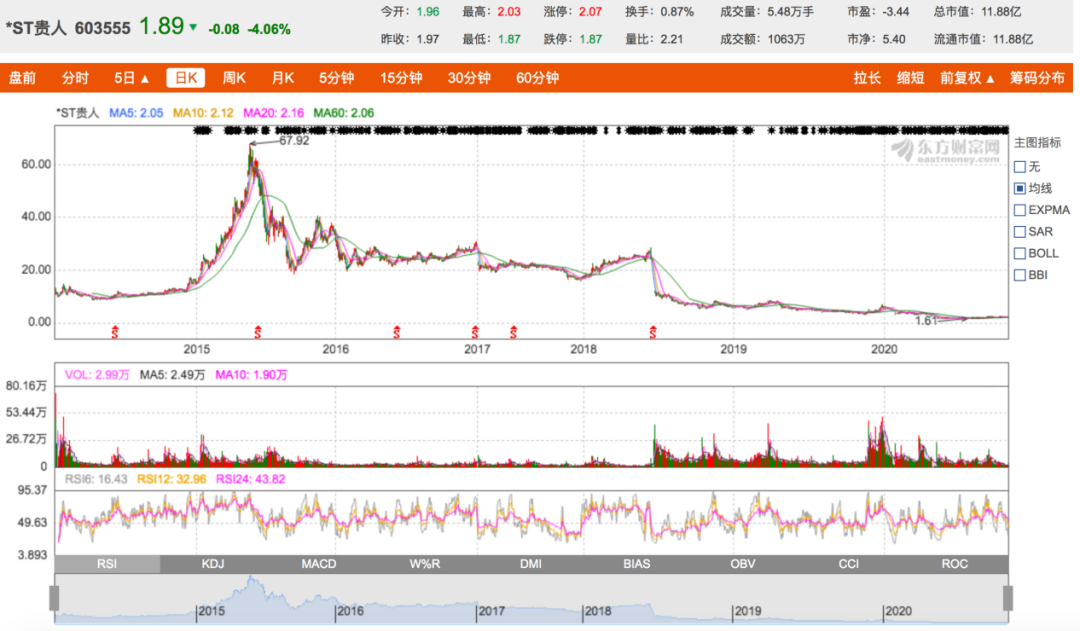 贵人鸟的资本故事已很难再讲下去。因为连续两年亏损,贵人鸟被实施退市风险警示,挣扎在退市边缘。